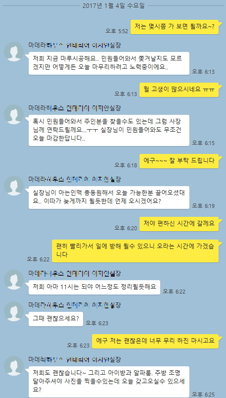마데라하우스는 그날 이사날인지 몰랐다고 말하는데..위에 톡을 보면...흠.....