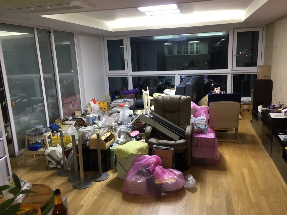 자기가 이런 상황 많이 봤다며...이삿짐 업체에 횡포에 휘둘리지 말고 짐 넣으라고 해서 우선 짐을 넣었더니 아래와 같은 꼴이 되었습니다.