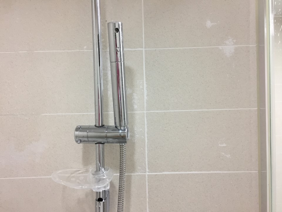 장 하나만큼 주방벽에 타일 마감이 안되고 속벽이 그데루 보이고 구멍도 있습니다.